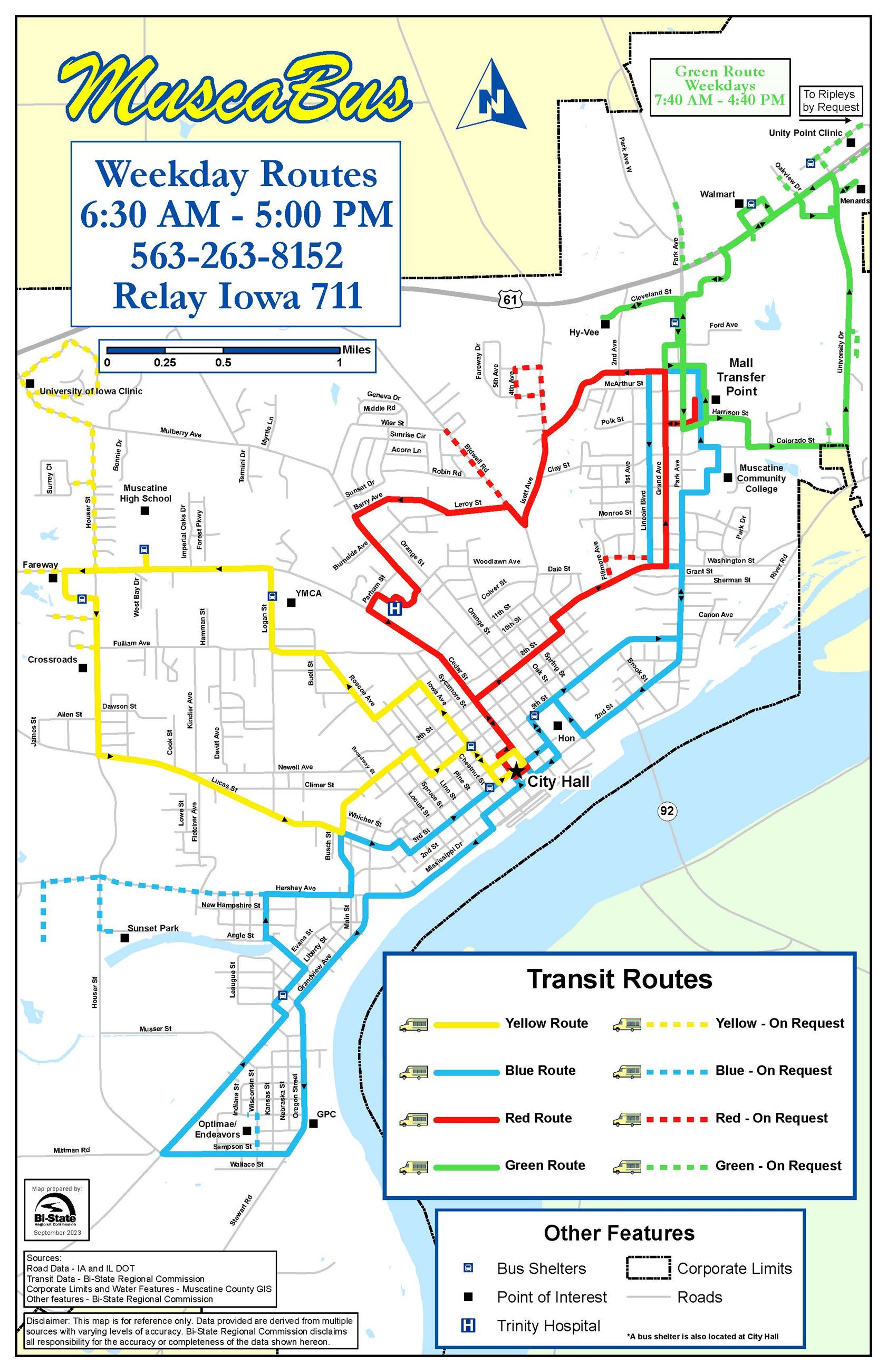 MuscaBus Route Maps