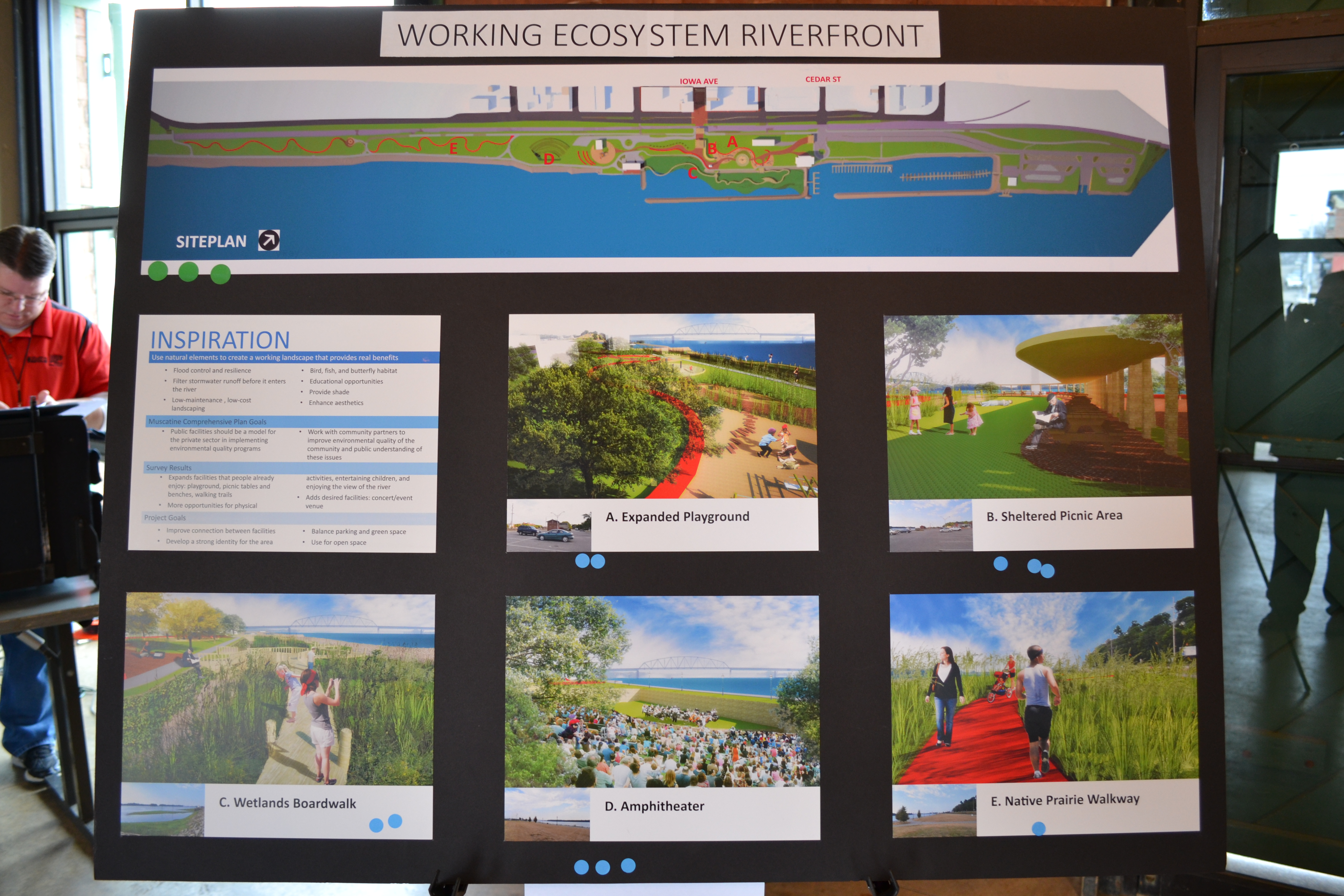 Now that the city's initial riverfront redevelopment goals have been met, there is no plan in place to guide future growth. Our task is to develop a plan for riverfront growth that reflects community preferences and highlights the area's unique characteristics.